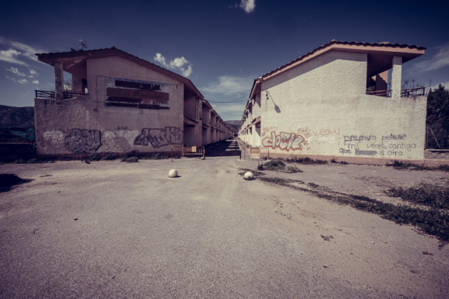Am Beispiel von Marina D’Or, selbsternannte ‚Stadt der Ferien‘ wollte ich mit dieser Fotoserie eingefangen, wie trostlos diese Resorts wirken, wenn die Touristen weg sind und nur ein paar wenige Einheimische und pensionierte Mitteleuropäer die fast menschenleeren Geisterstädte beleben.