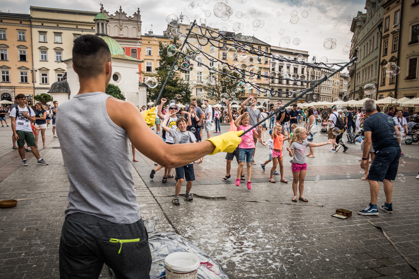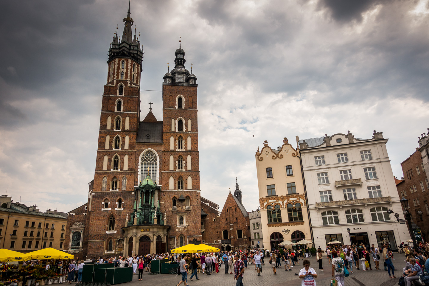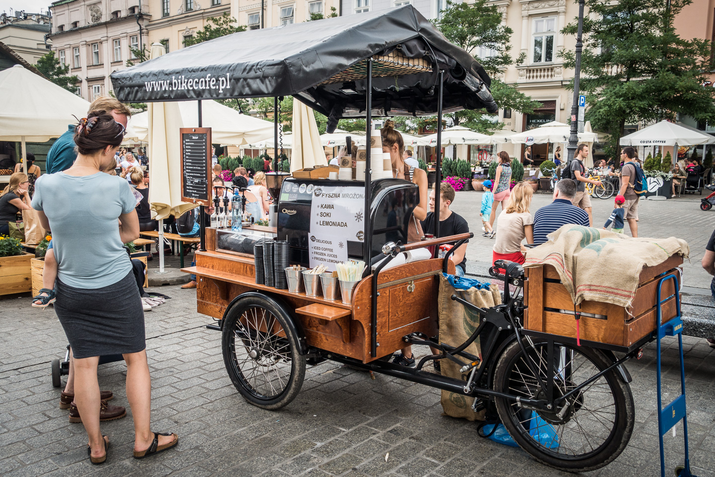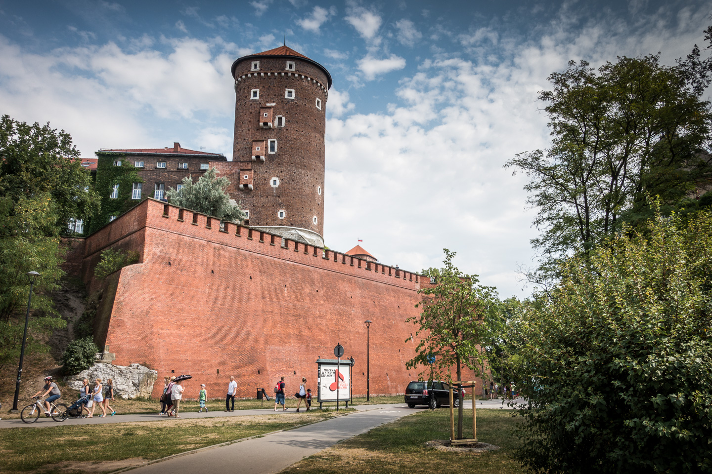 Gut ausgeschlafen machen wir uns schon am Morgen mit unseren Bikes auf um Krakau zu entdecken. Der leicht bewölkte Himmel und die angenehmen Temperaturen sind ideal für eine Stadtbesichtigung – definitiv besser als die gestrige Hitze. Nur dass der Wetterbericht für den Nachmittage starke Regen ansagt trübt die Freude ein wenig. Deshalb starten wir frühzeitig, um möglichst viel zu sehen bevor das Regentief eintrifft.
