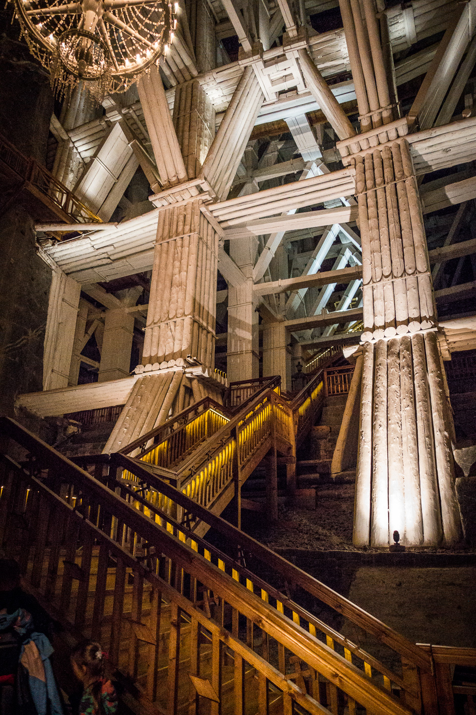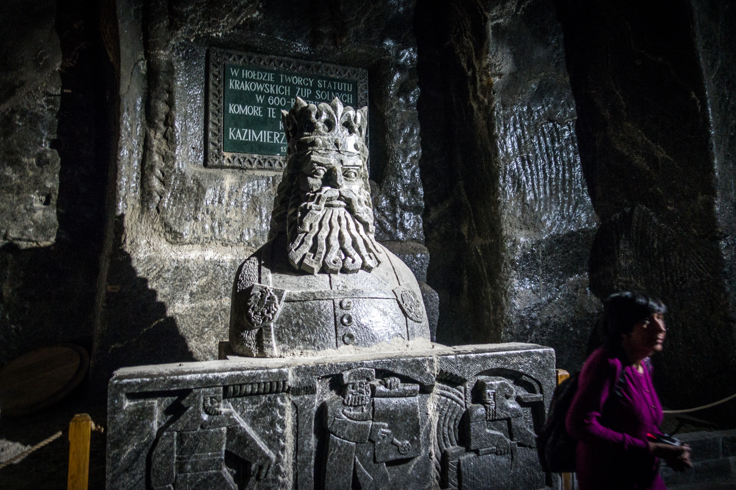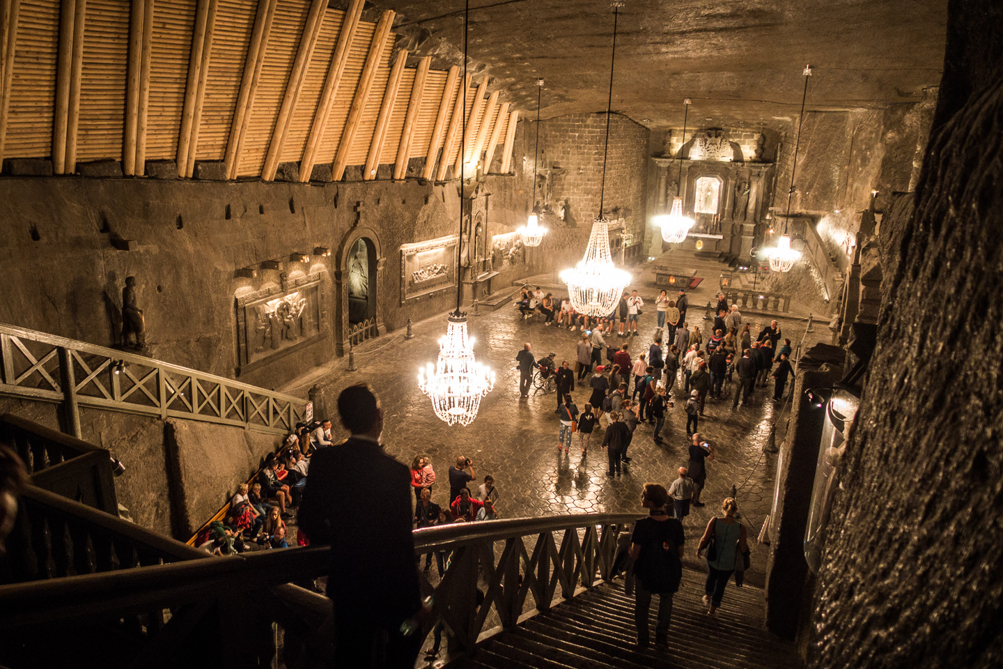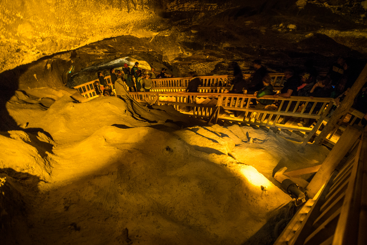 Nach zwei Stunden anstehen und warten gehts endlich über eine Holztreppe 350 Stufen und 130 Meter in die Tiefe. Auf der dreistündigen Tour kommen wir an in Salz gehauene Statuen und unterirdischen Seen und einer Kapelle vorbei. Der Tourguide erklärt uns in englisch und in witziger Art, dass man ungeniert Boden, Wände oder Decke abschlecken dürfe. Dass die salzige Luft gut für die Lunge sei und das Leben um ganze drei Tage verlängern soll. Und dass man unbedingt in der Gruppe bleiben müsse, da man sich sonst schnell in den endlosen Gängen verlaufen könnte. Dank verschiedenen Stationen mit nachgestellten Szenen der harten Arbeit der Minenarbeiter lassen sich die Arbeitsbedingungen der letzten Jahrhundert gut nachvollziehen. Am beeindruckensten fand ich aber die riesigen unterirdischen Hallen, welche bis zu 70 Meter in die Höhe ragen. Eine davon ist eine unterirdische Kirche, welche komplett in Salz gehauen ist. Boden, Wände, Figuren, sogar der Altar, alles aus reinstem Speisesalz.