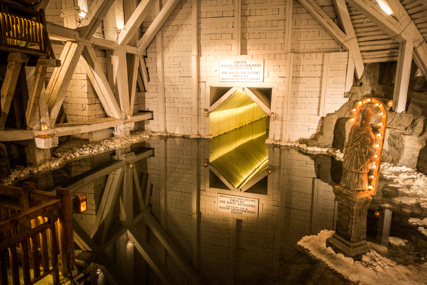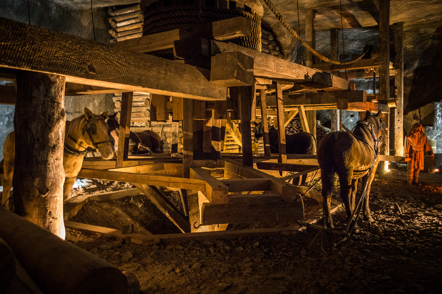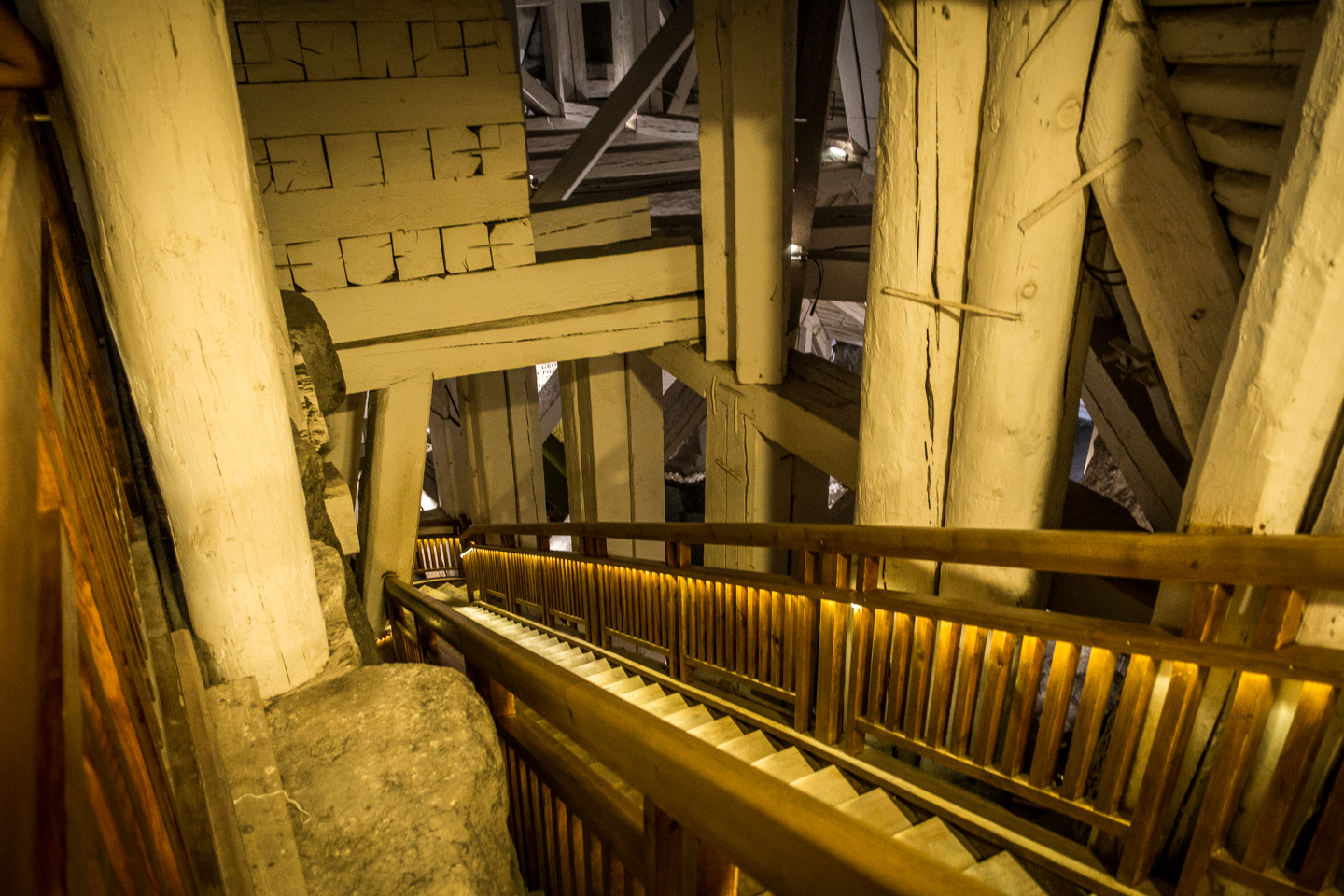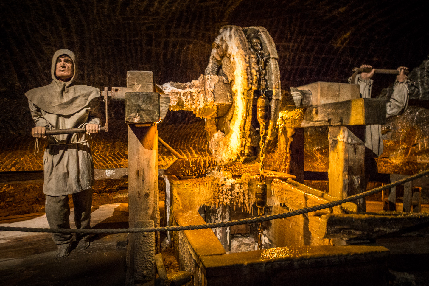 Nach zwei Stunden anstehen und warten gehts endlich über eine Holztreppe 350 Stufen und 130 Meter in die Tiefe. Auf der dreistündigen Tour kommen wir an in Salz gehauene Statuen und unterirdischen Seen und einer Kapelle vorbei. Der Tourguide erklärt uns in englisch und in witziger Art, dass man ungeniert Boden, Wände oder Decke abschlecken dürfe. Dass die salzige Luft gut für die Lunge sei und das Leben um ganze drei Tage verlängern soll. Und dass man unbedingt in der Gruppe bleiben müsse, da man sich sonst schnell in den endlosen Gängen verlaufen könnte. Dank verschiedenen Stationen mit nachgestellten Szenen der harten Arbeit der Minenarbeiter lassen sich die Arbeitsbedingungen der letzten Jahrhundert gut nachvollziehen. Am beeindruckensten fand ich aber die riesigen unterirdischen Hallen, welche bis zu 70 Meter in die Höhe ragen. Eine davon ist eine unterirdische Kirche, welche komplett in Salz gehauen ist. Boden, Wände, Figuren, sogar der Altar, alles aus reinstem Speisesalz.