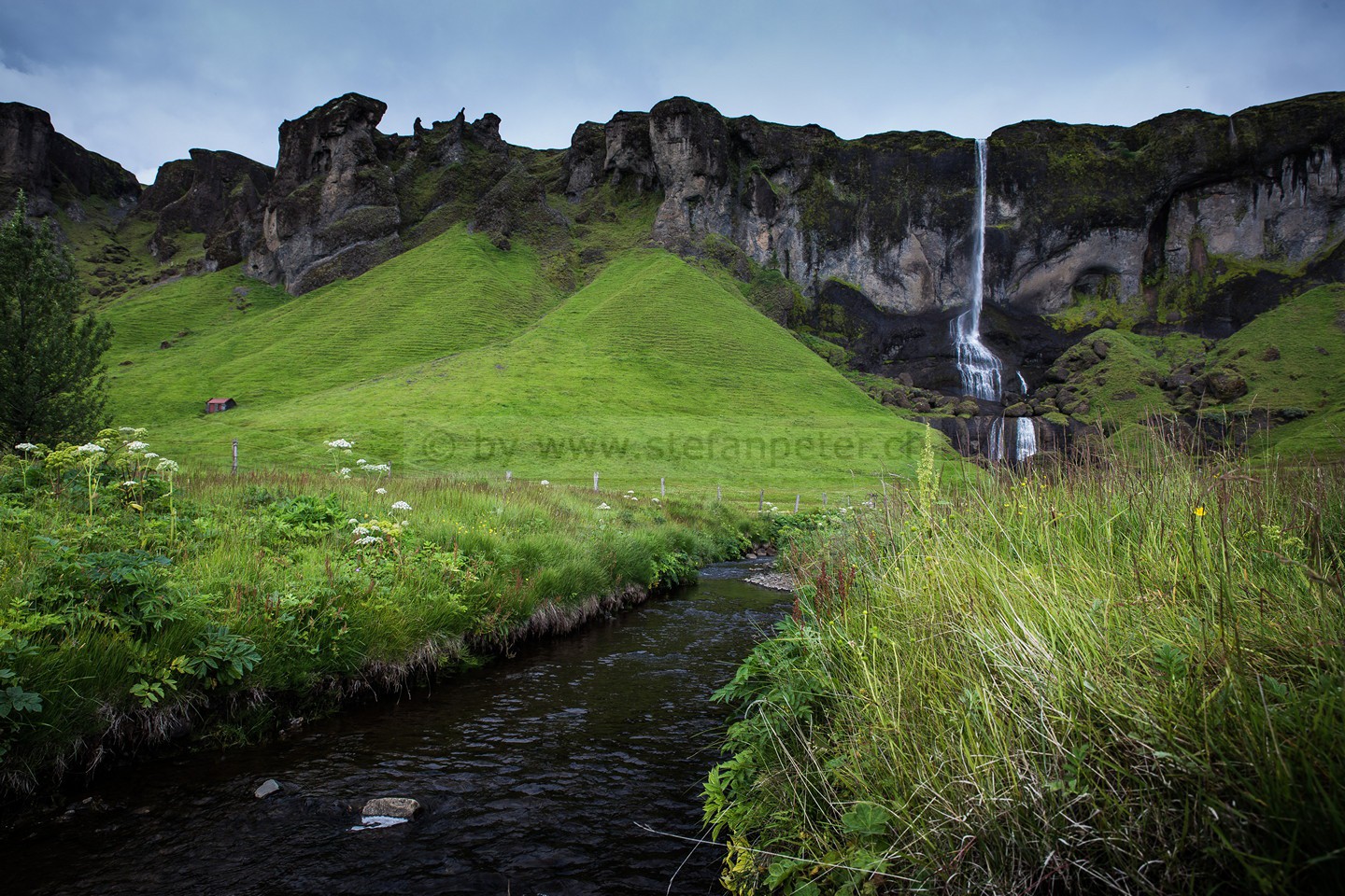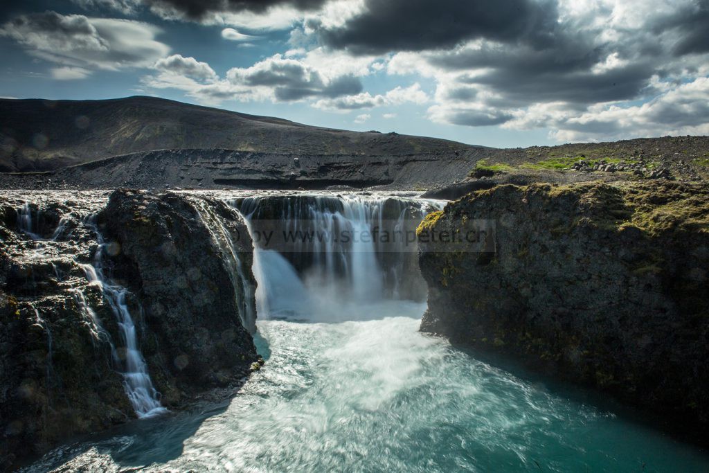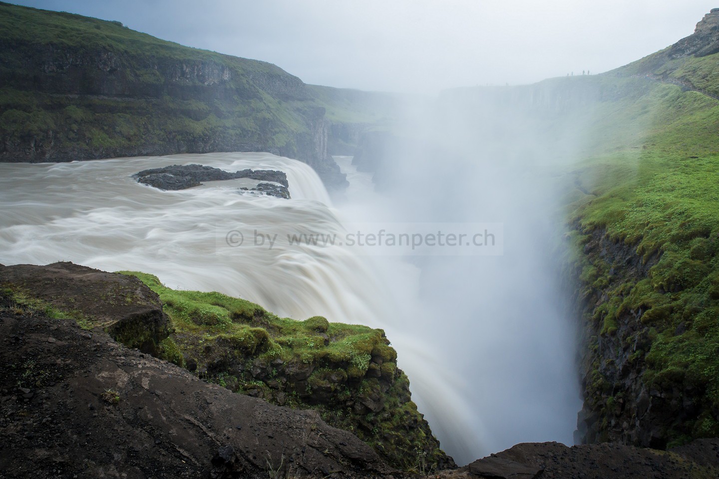Auch wenn diese Wasserfälle bestimmt zu den meist fotografierten Motiven Islands gehören, und sich während der kurzen Sommerzeit Tag für Tag mit Stativen und Kameras bewaffnete Fotografen die besten Plätze streitig machen, konnte auch ich es nicht lassen, dieses tosende Naturschauspiel mit meiner Linse festzuhalten.