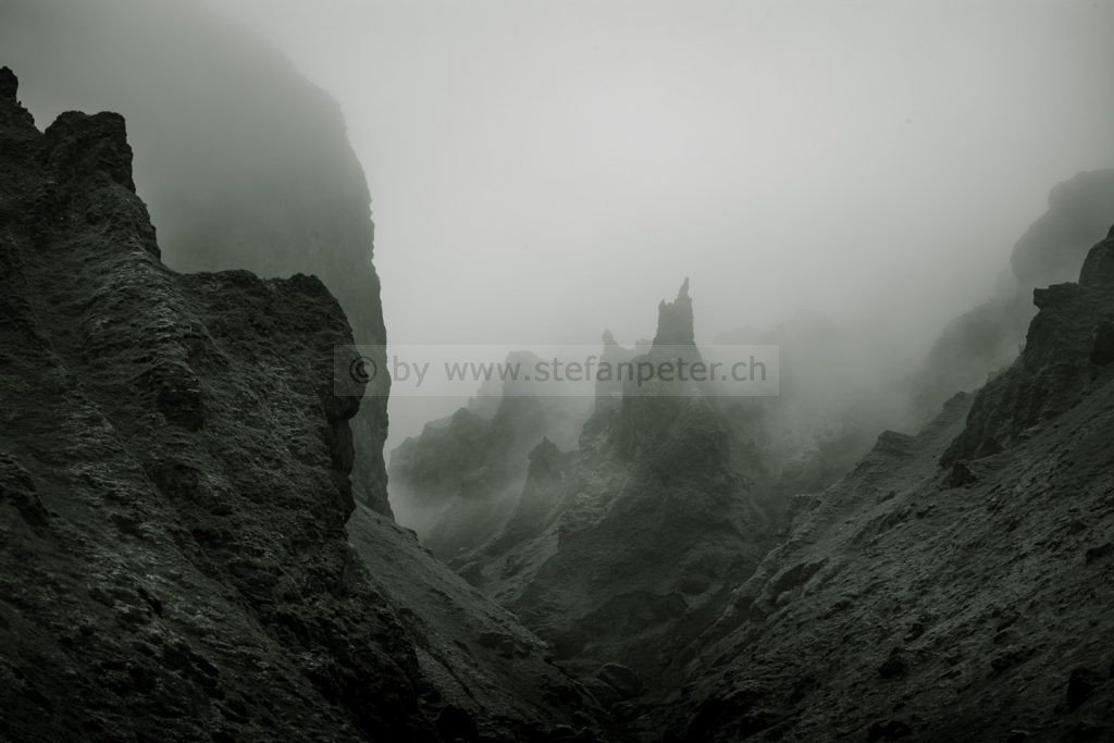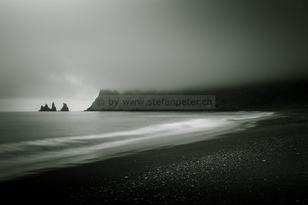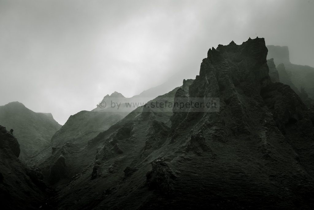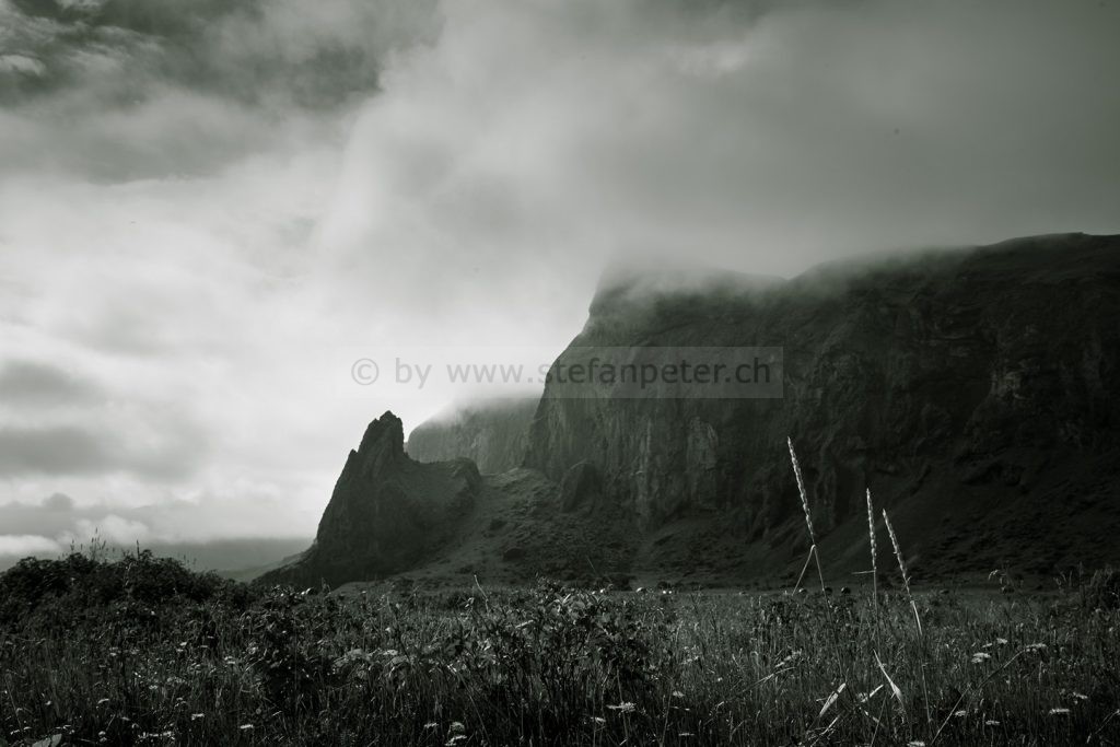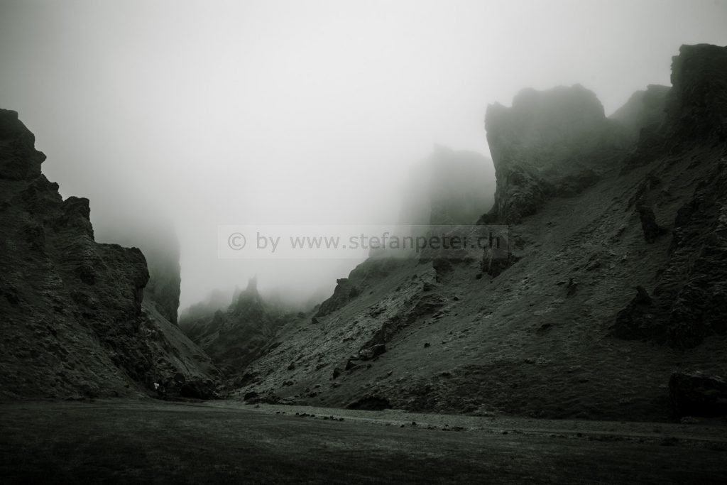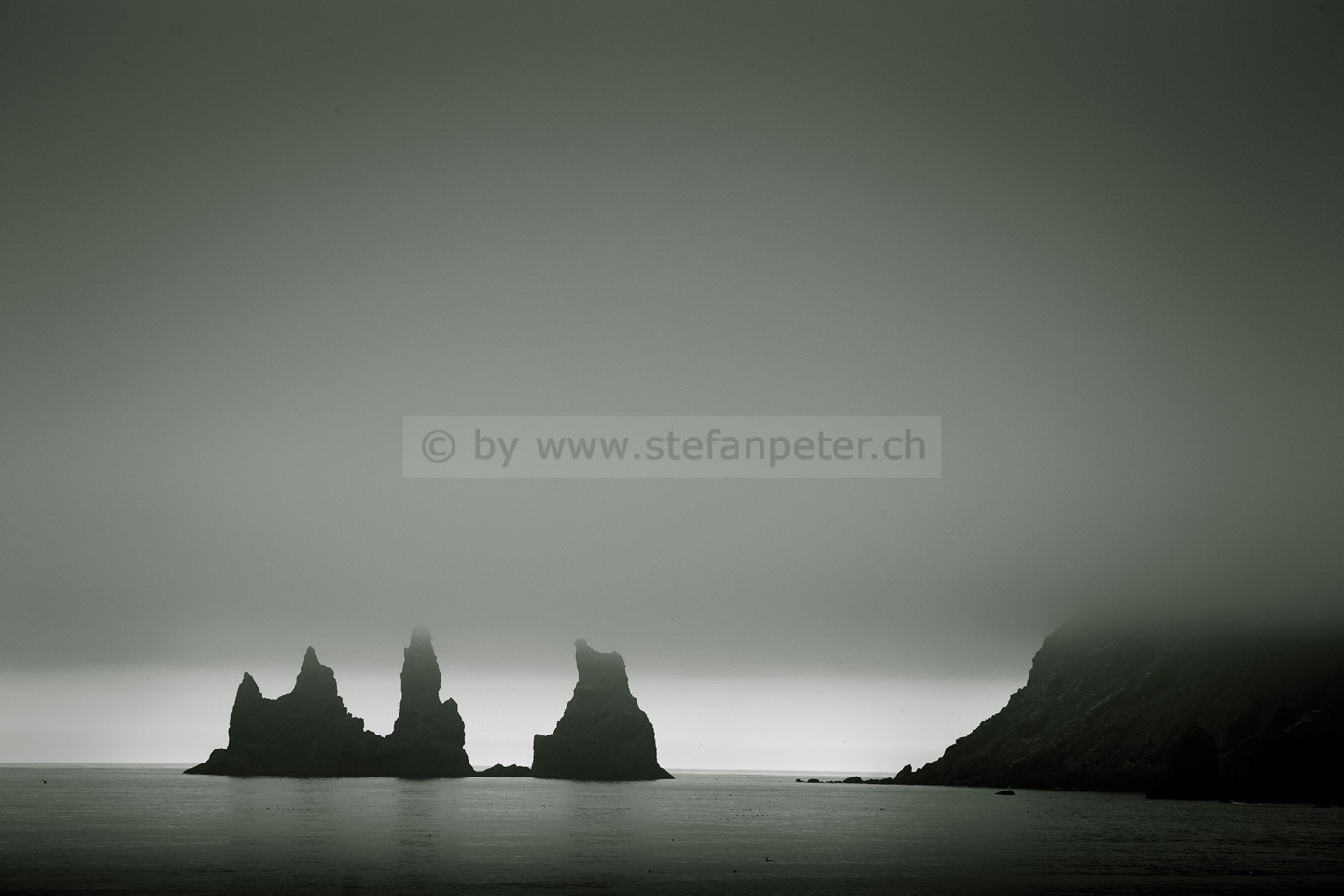 In Island ist es oft dunkel. Die Nächte sind lange und es regnet viel. Der Wind weht einem um die Ohren. Der Winter ist kalt und hart. Die Einsamkeit begegnet einem überall. Wohl deshalb sind viele Isländer heute noch abergläubisch und glauben an Drollen und Feen. Vielleicht gerade deswegen wirkt die Landschaft in Island gerade bei schlechtem Wetter düster und mystisch. Tiefe Wolken schleichen sich durch skurrile Felsformationen. Mit dieser Serie habe ich versuchte, genau dieses Bild von Island in klassische schwarzweissen Bildern festzuhalten und fühlbar zu machen.