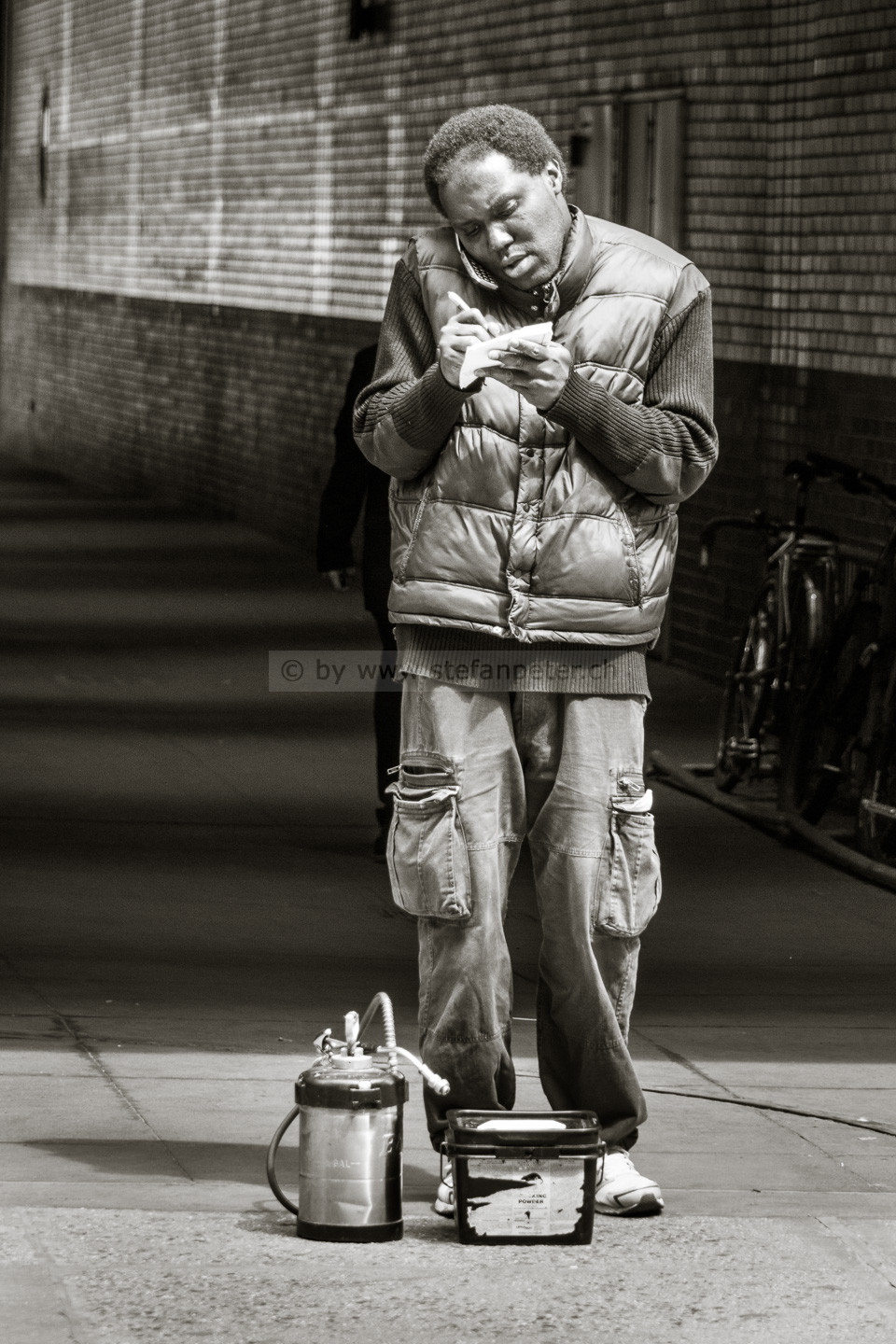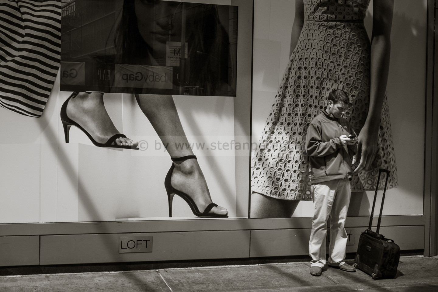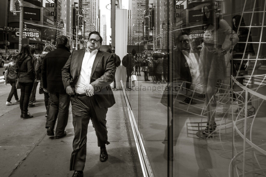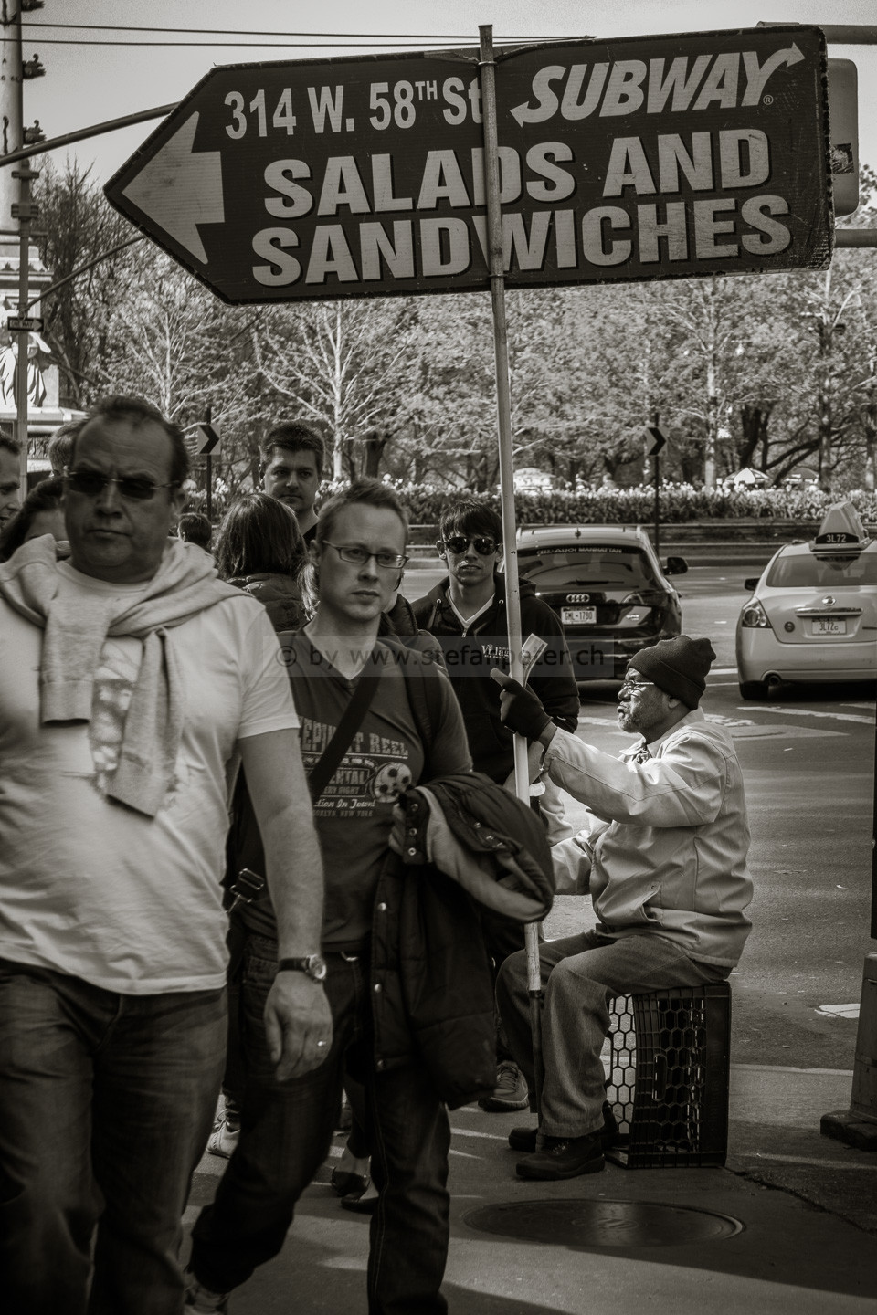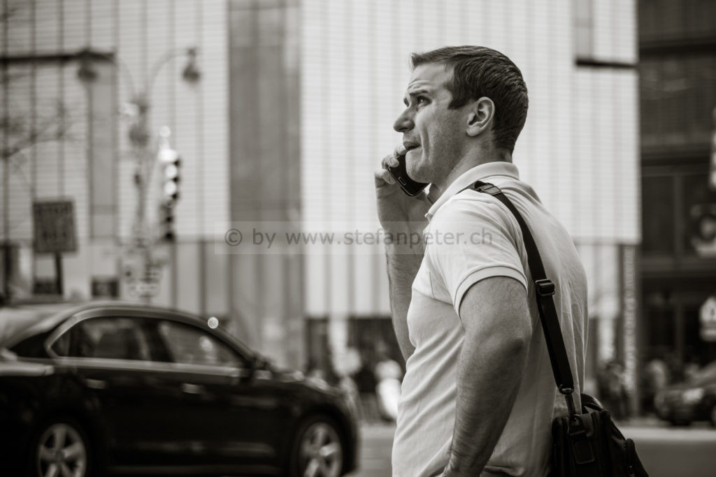 Für mich als Studiofotografen ist es sehr entspannend, in einer anderen Stadt wie in diesem Fall New York, ganz ungefragt und heimlich, spezielle und ausgefallene Menschen und Momente zu fotografieren. Im Gegensatz zur Studiofotografie, wo alles gestellt ist und ich Einfluss auf fast jedes Detail wie Licht, Pose, Kleidung oder Ausdruck habe, ist in der Steetfotografie nichts geschönt und so gut wie alles dem Zufall überlassen. Hier gilt es einfach, zu stillen beobachten und im richtigen Moment den Auslöser zu drücken. Um aber wirklich starke und einzigartige Bilder zu machen, braucht viel Zeit und Geduld. Ob mir dies bei diesen Bildern gelungen ist, können Sie selber beurteilen.